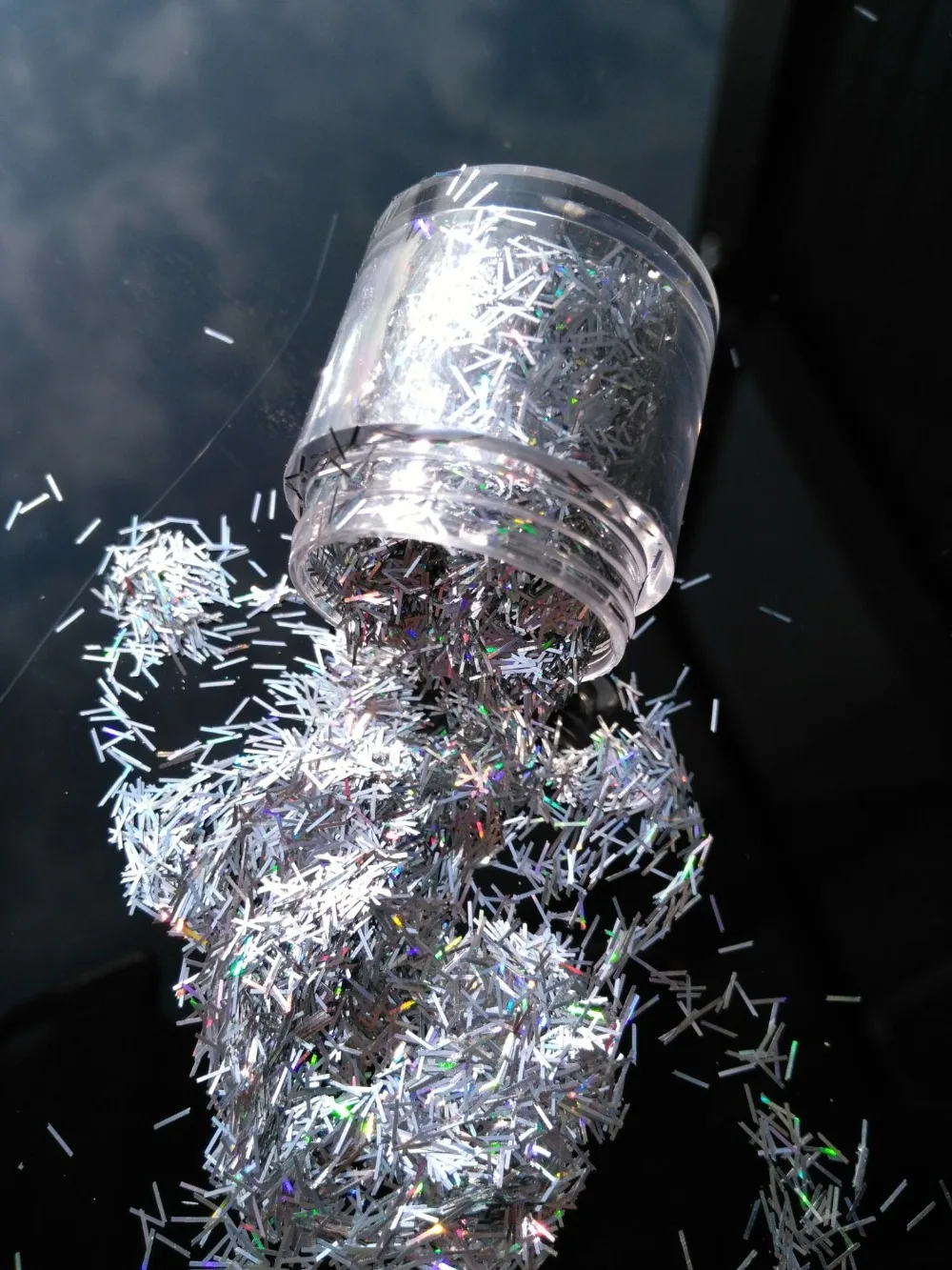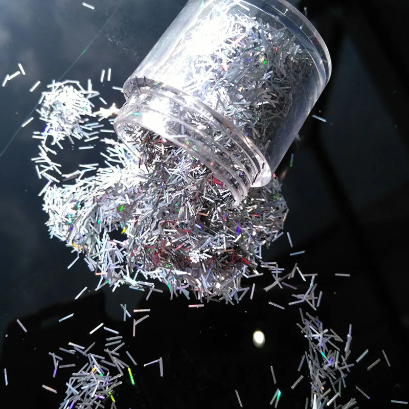 MFNAILS Bar-Shaped Flakes, Iridescent AB Silver/Red Shining HOLO Color Strpie 3D 3*0.2mm Nail Art Glitters Flake Decoration 10ml