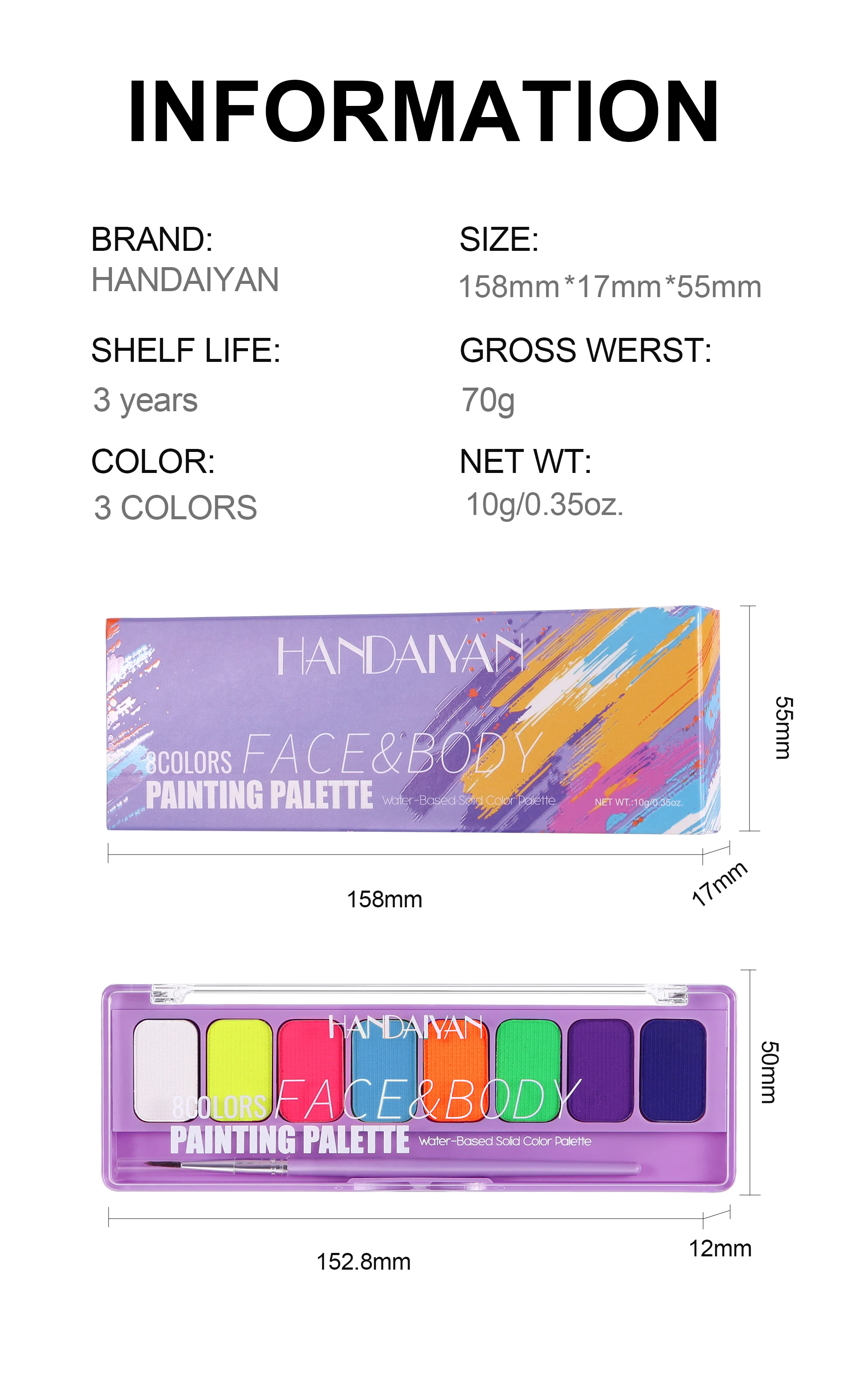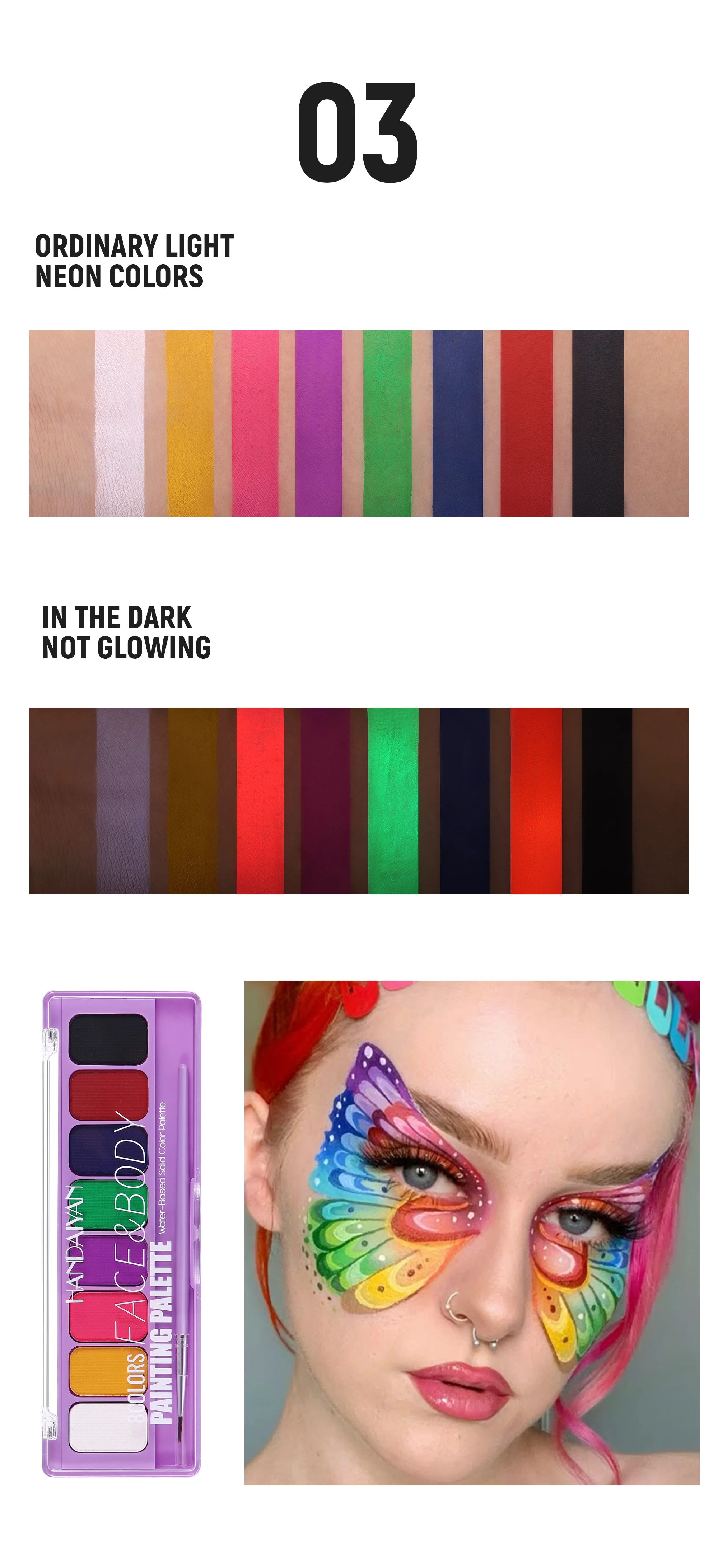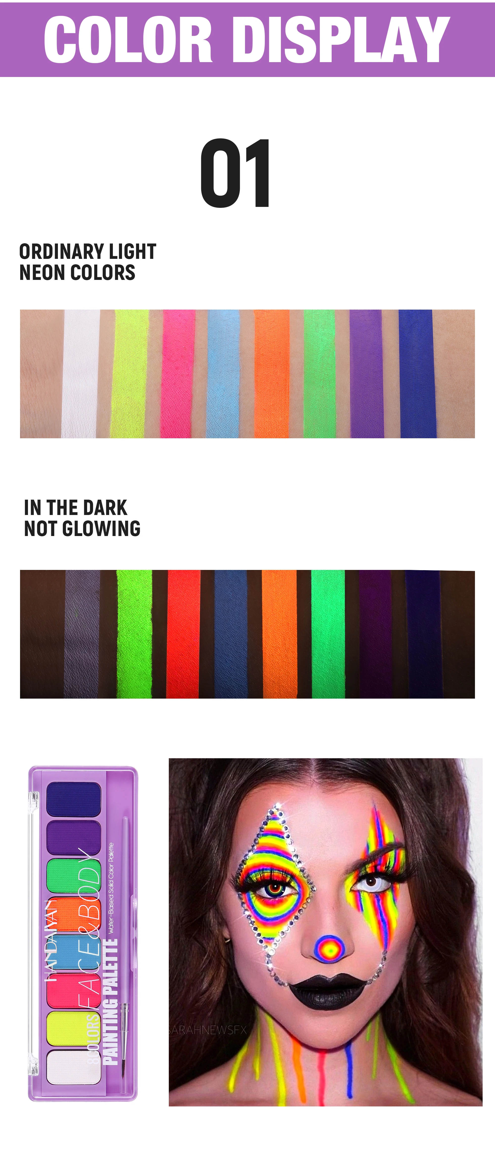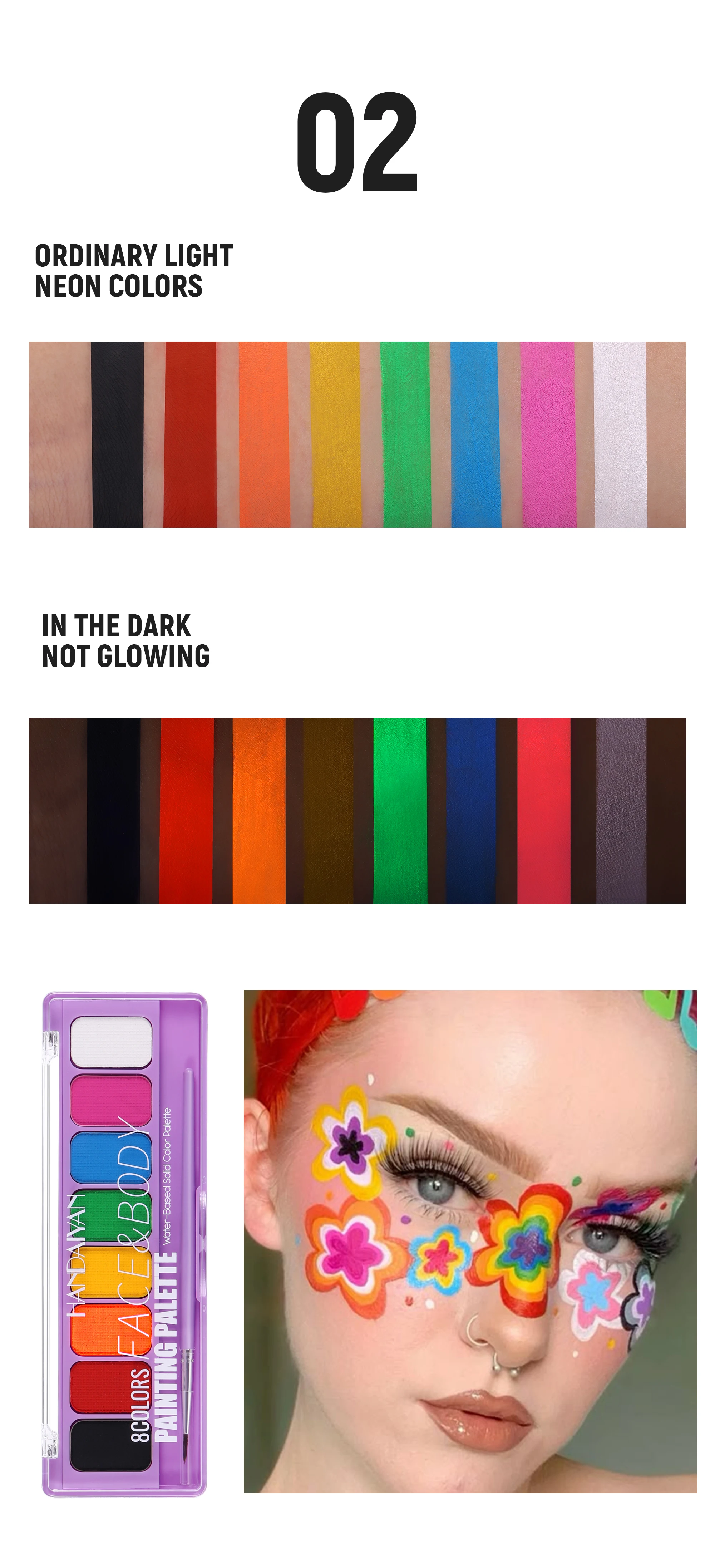 8 Colors Face&Body Painting Palette washable Fluorescent Uv Face Paint Halloween Party Fancy Dress Beauty Makeup Cosmetics