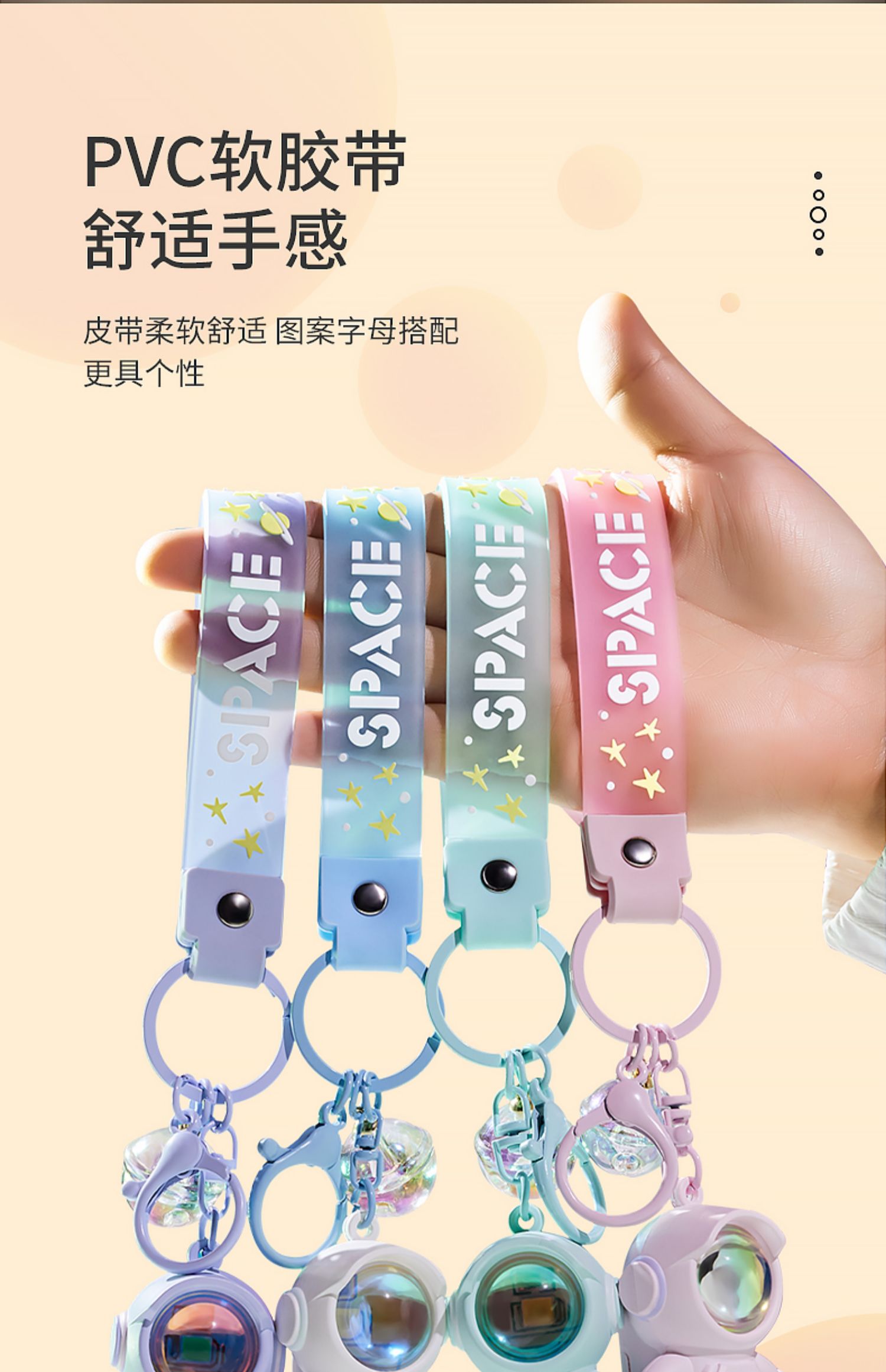 Style 27 Astronaut Sunset Lamp Keychain - Purple (with light version)+Pink Chai Xiaoberry Keychain,