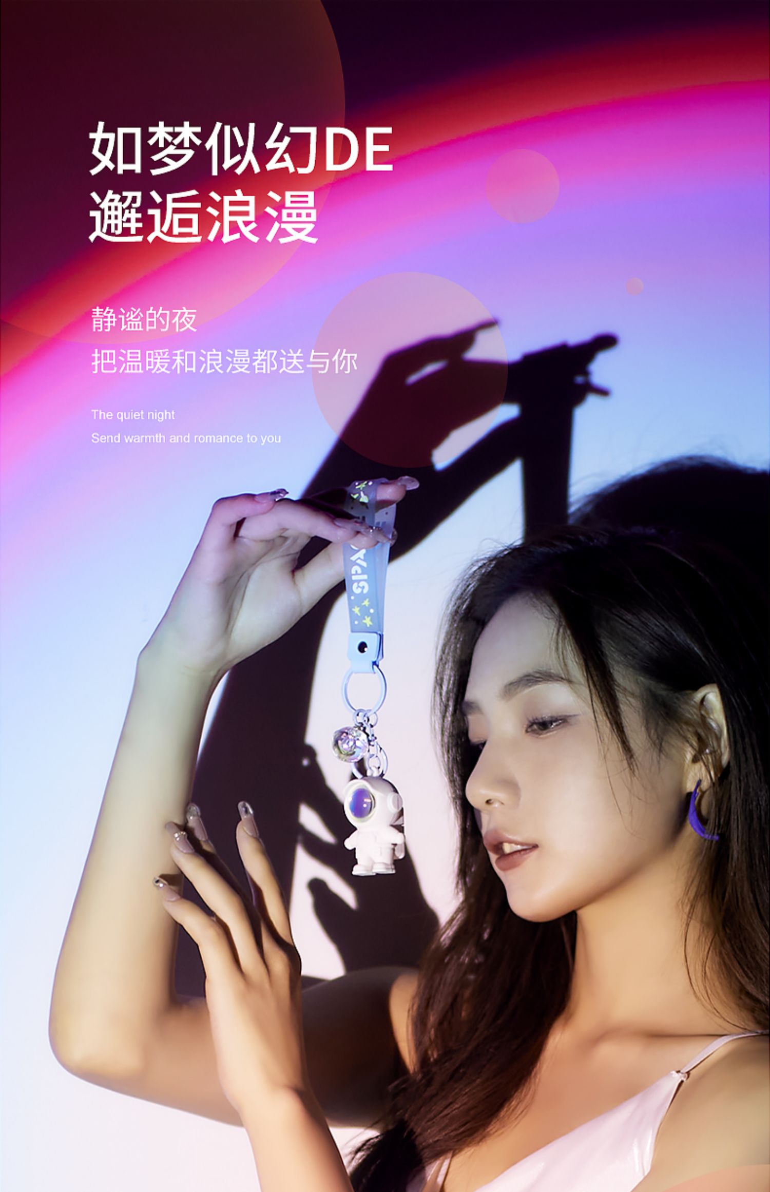 Style 10 Astronaut Sunset Lamp Keychain - Pink (with light+18 batteries+screwdriver),