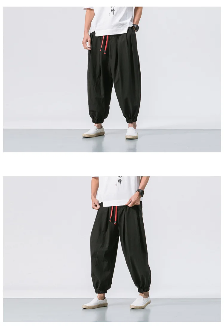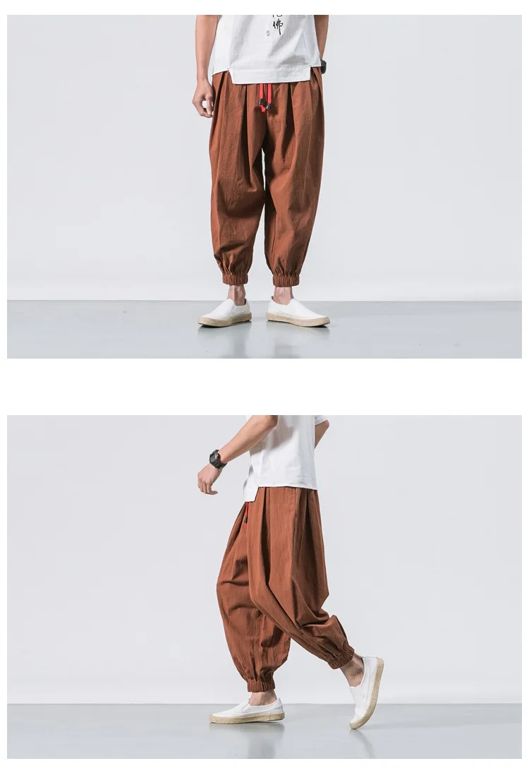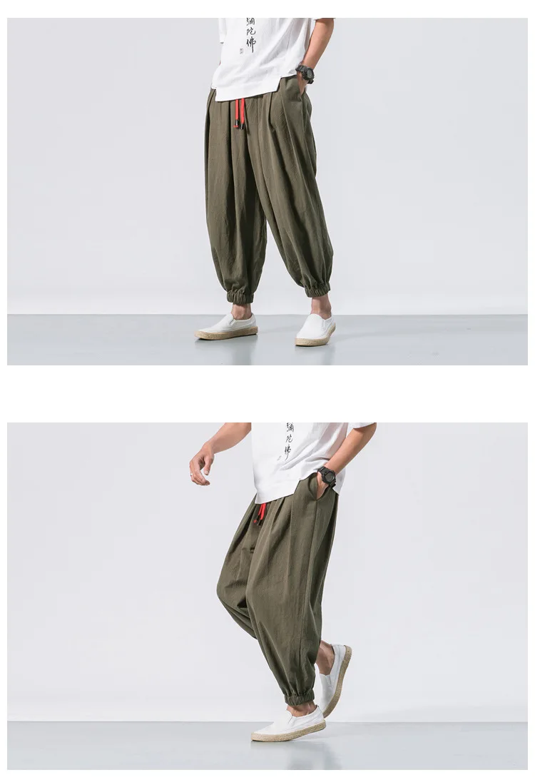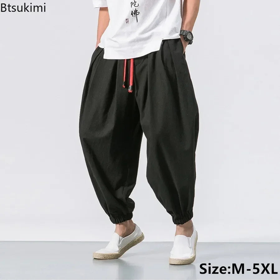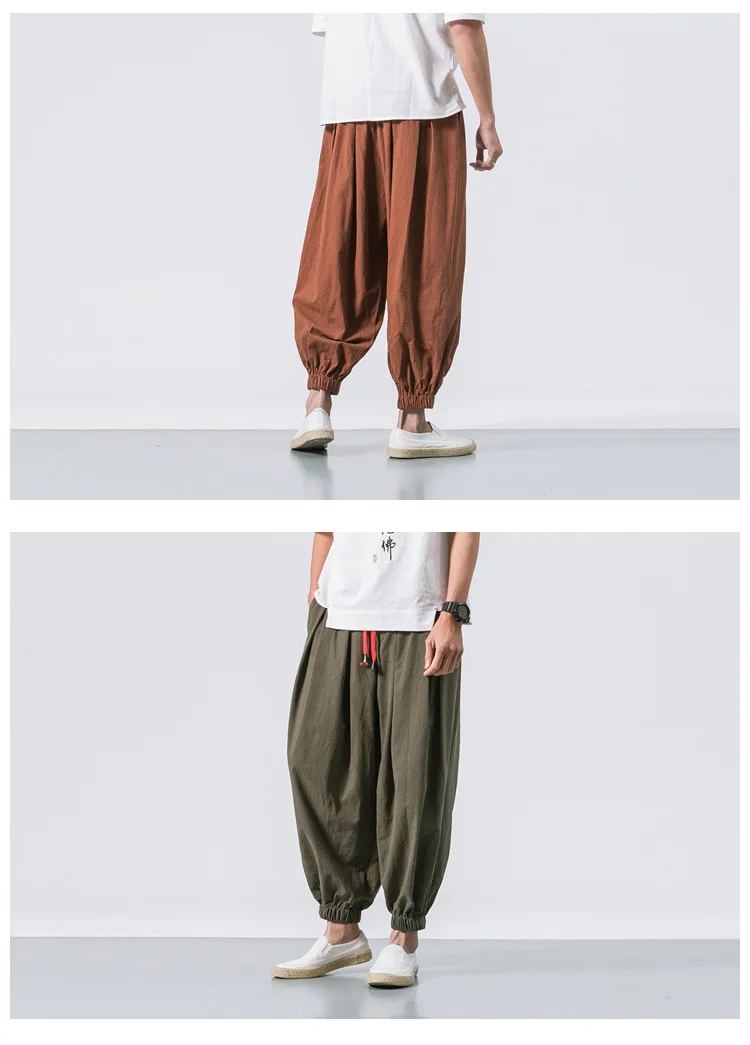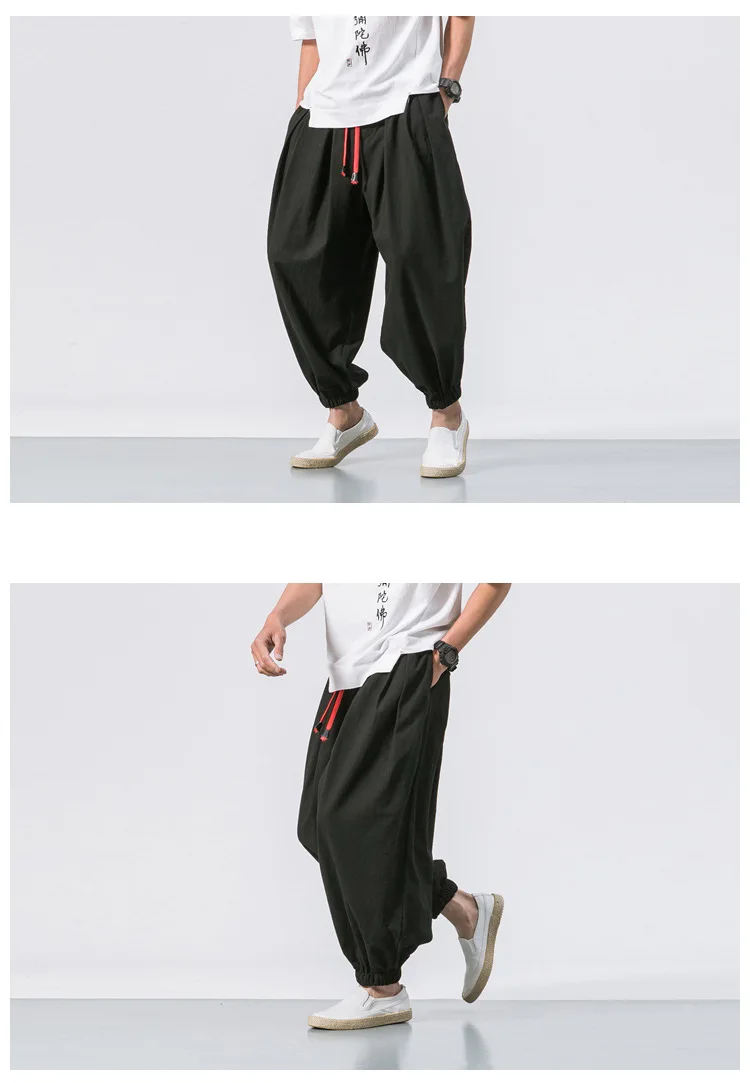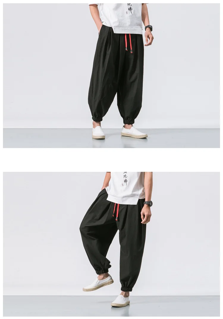 Fashion Harem Pants Men's Chinese Style Loose Cotton Linen Trousers Trend Streetwear Man Casual Pants Japanese Kimono Sweatpants