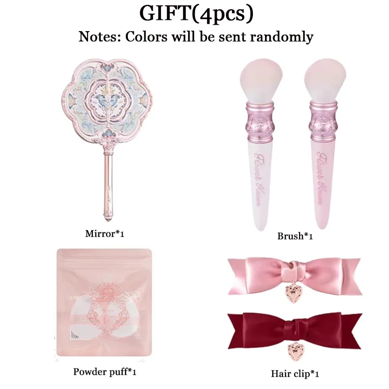 Free Gift: 4pcs ,Colors will be sent randomly (Hair clip*1/Brush*1/Mirror*1/Powder puff*1)