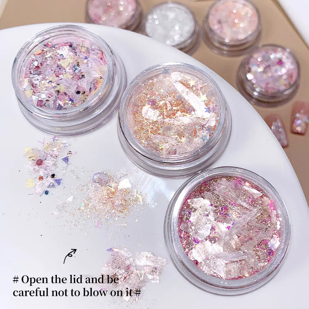 Mix Rainbow Flakes, Holographic Sequins, And Pearl Flakes Together To Create a 3D Nail Art Magic!