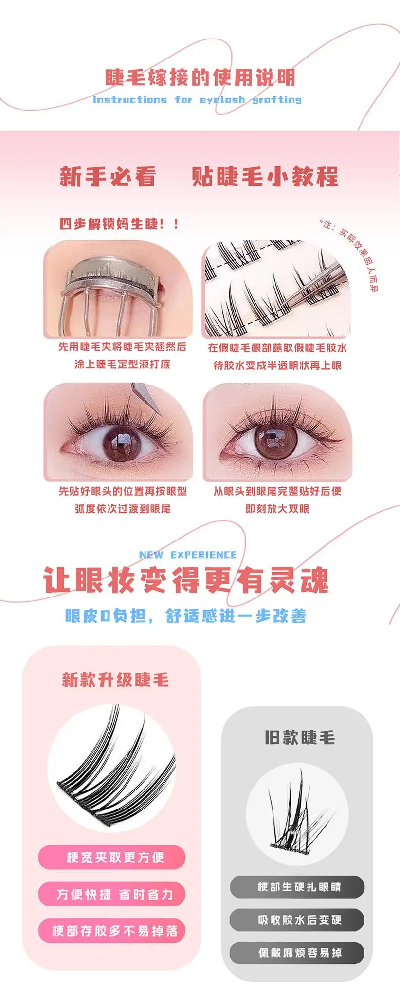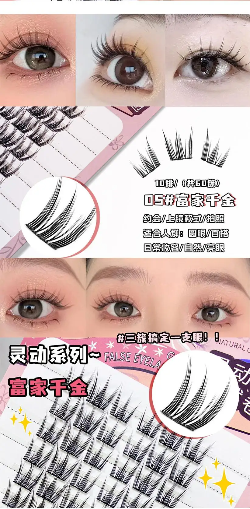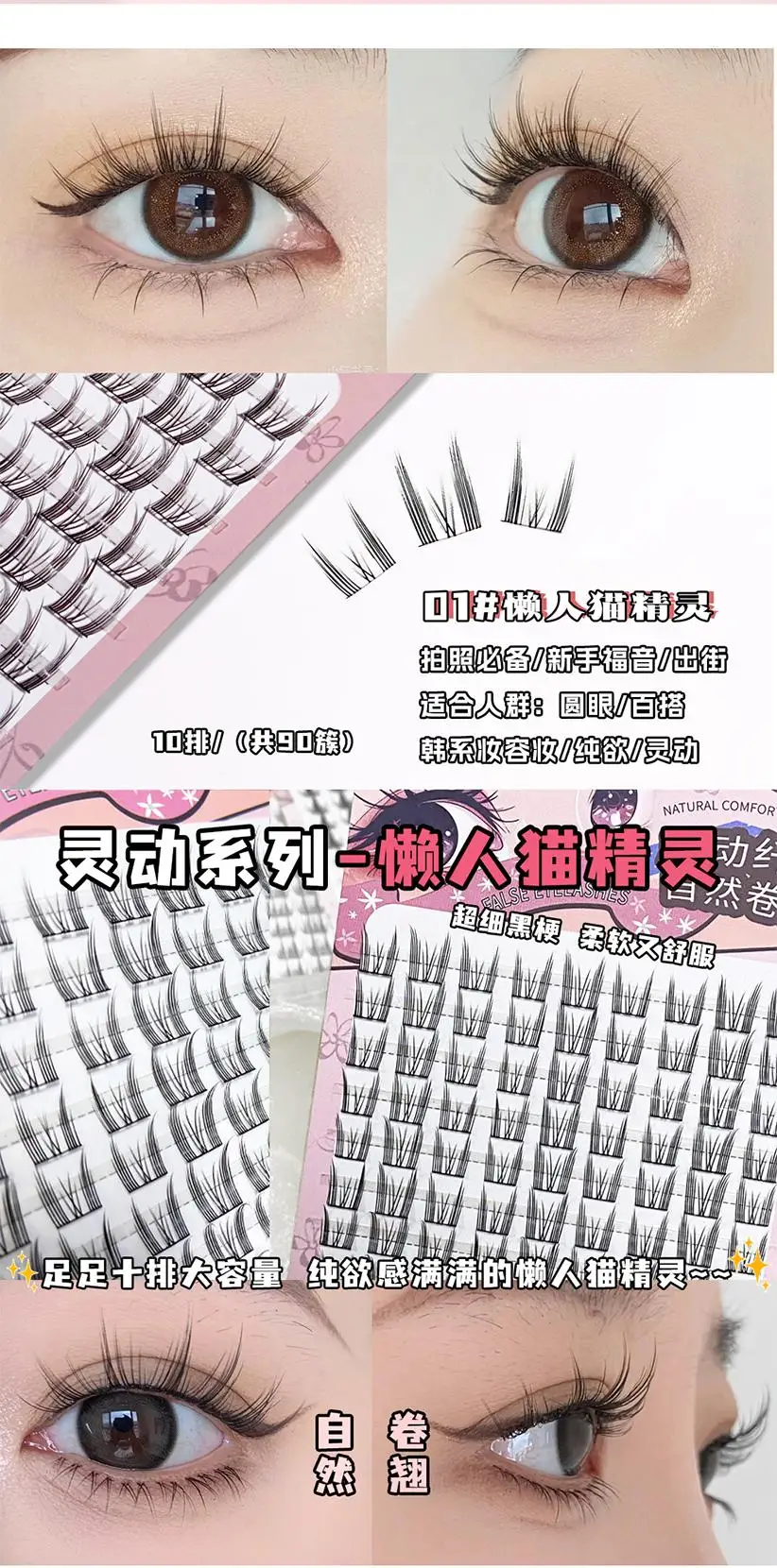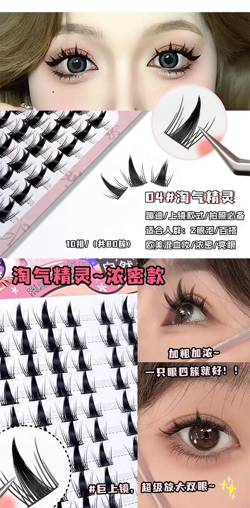 Elaborate to create attractive eye makeup, light and comfortable, unique design, natural curl from the root, beautiful arc, can perfectly fit the eyelids, easily enlarge the eyes, add deep charm. Each eyelash is slender and distinct, moderately dense, showing a natural and stunning effect, whether it is daily street or important occasions can be adapted, so that you can show confidence.