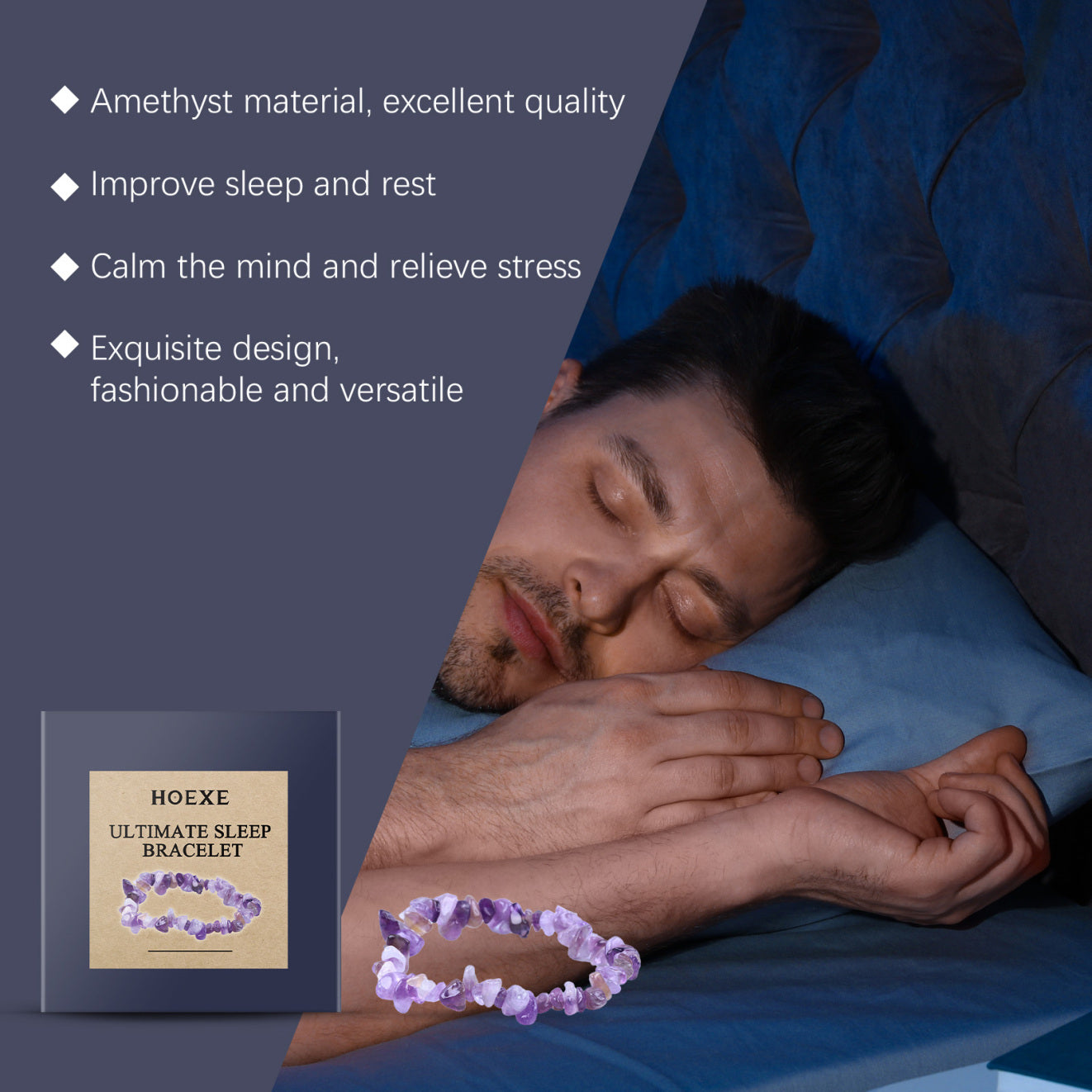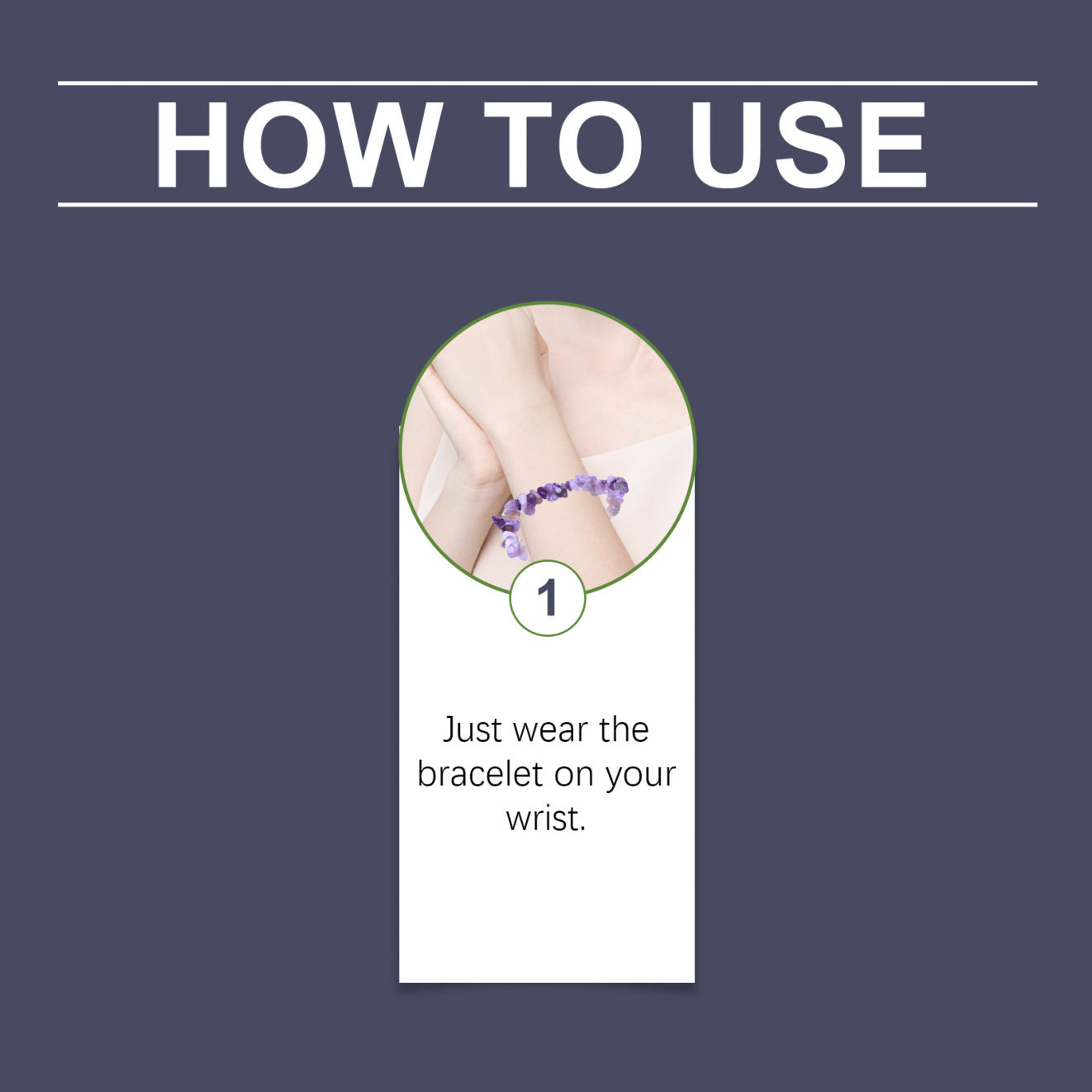 Our decorative bracelet contains amethyst stone. It can help calm the mind, relieve tension, balance the body's energy field, help regulate circadian rhythms, and improve sleep quality. The way to use it is simple: wear the bracelet on your wrist. Amethyst gravel helps you sleep deeper. It brings peace of mind and serenity when worn.