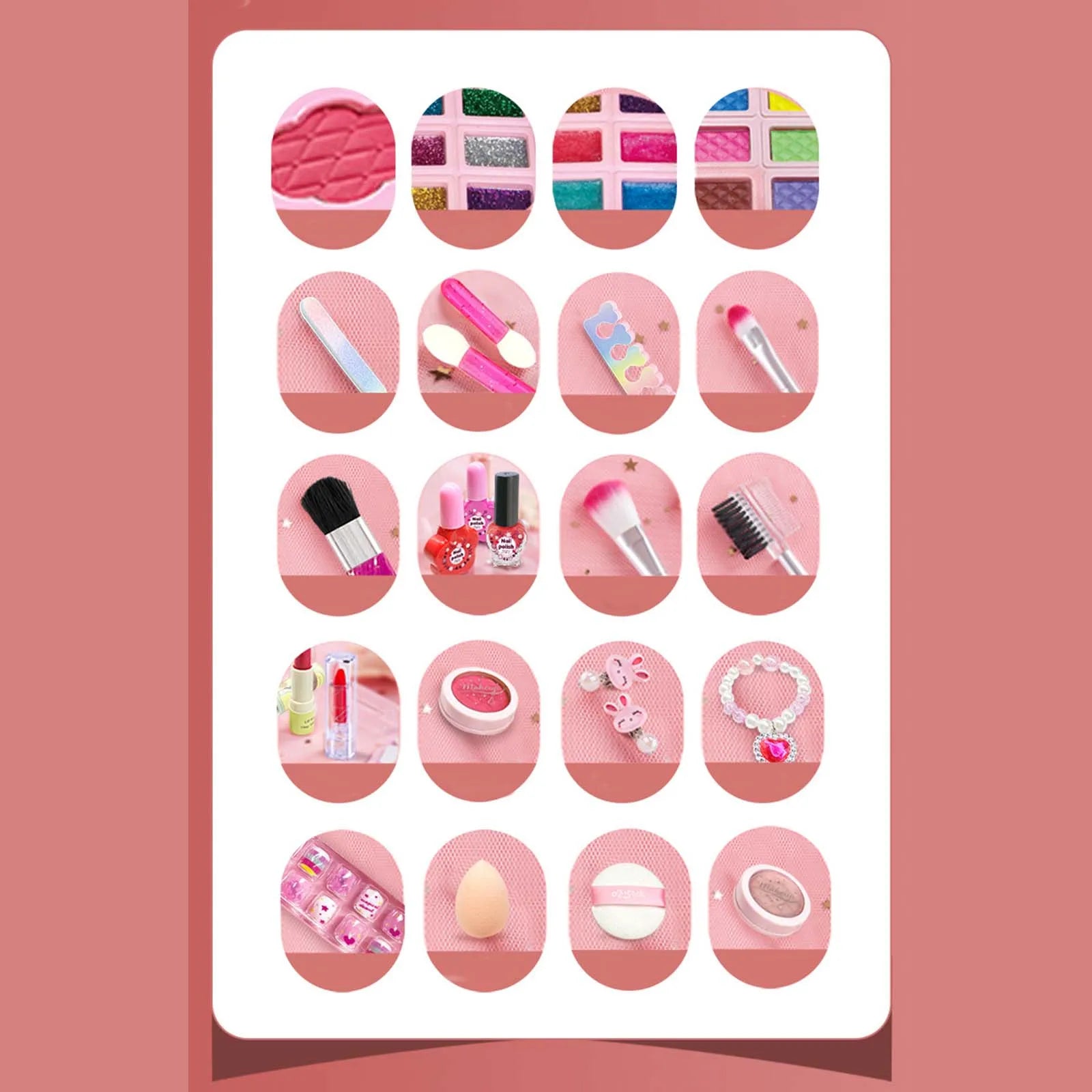 【Durable Material】Kids makeup set is made of high quality abs material, smooth edge without burrs, sturdy and durable.