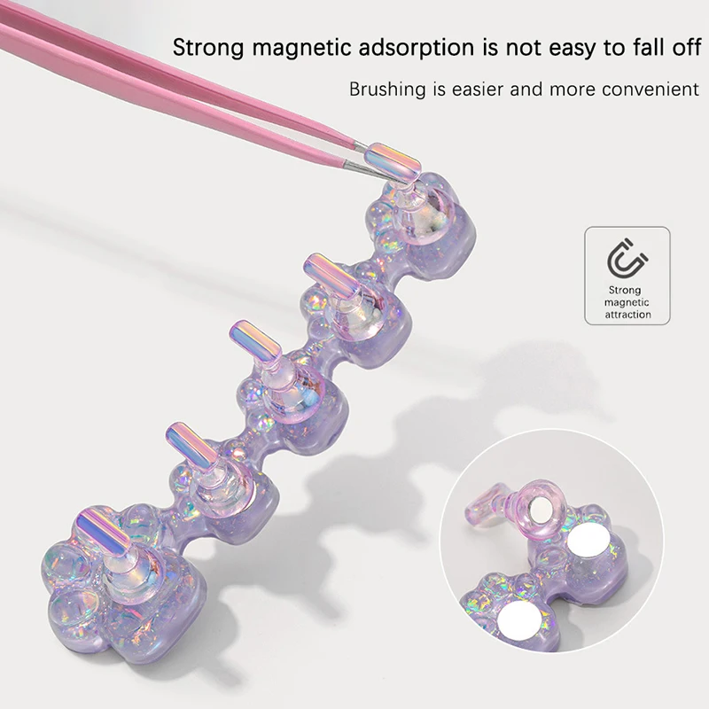 1. Every holder has a built-in magnetic design so the display stand can stand upright and stay in place when you are painting or doing nail art.