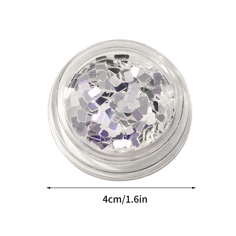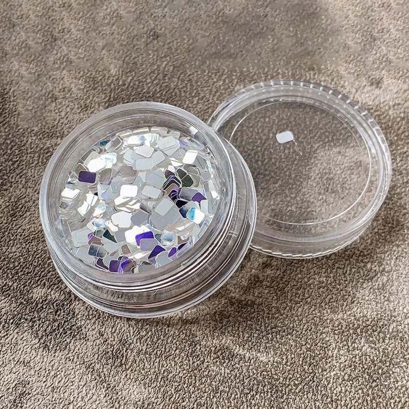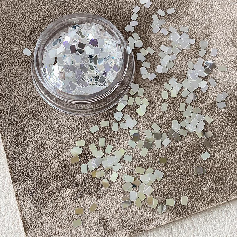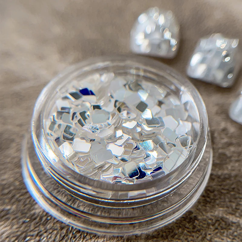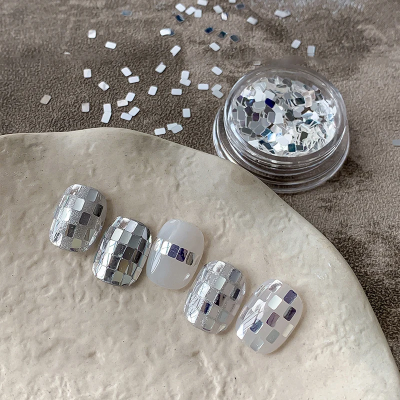 1. High quality material: This nail accessory is made of high-quality sequins and contains silver glitter elements, which can greatly increase the shine and layering of nail art, creating a luxurious and colorful effect.