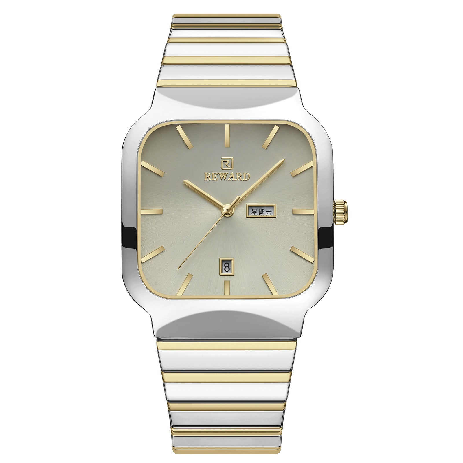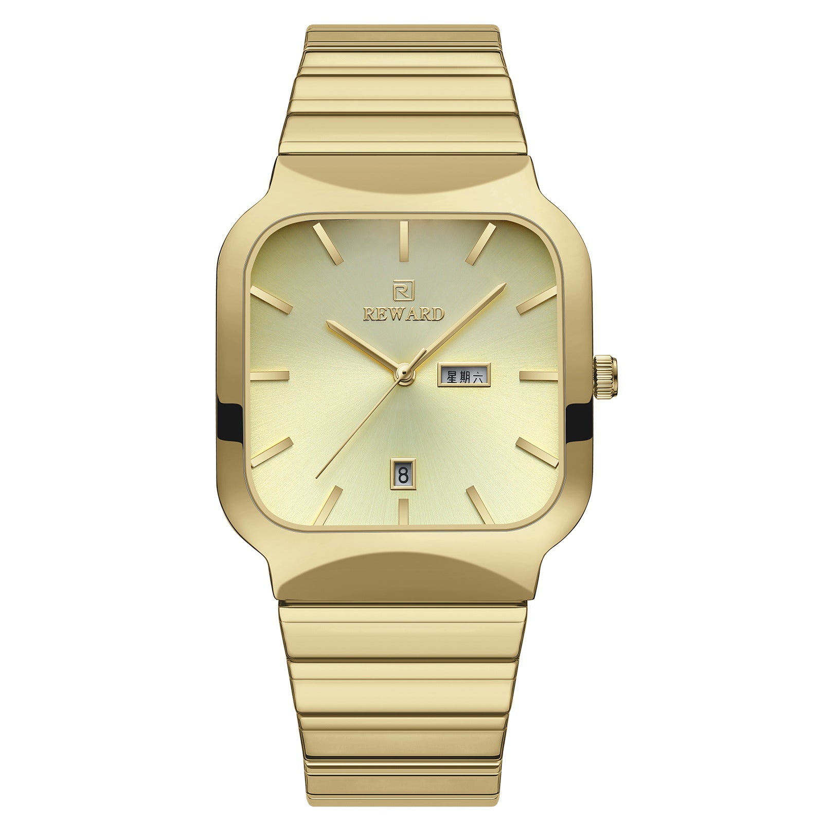 Color: M gold shell gray surface gold watchband, M gold shell gold surface gold watchband, M Silver Case Blue surface silver stripes, L gold shell white surface gold watchband, L gold case gold surface gold strap, L Silver Case Blue surface silver stripes