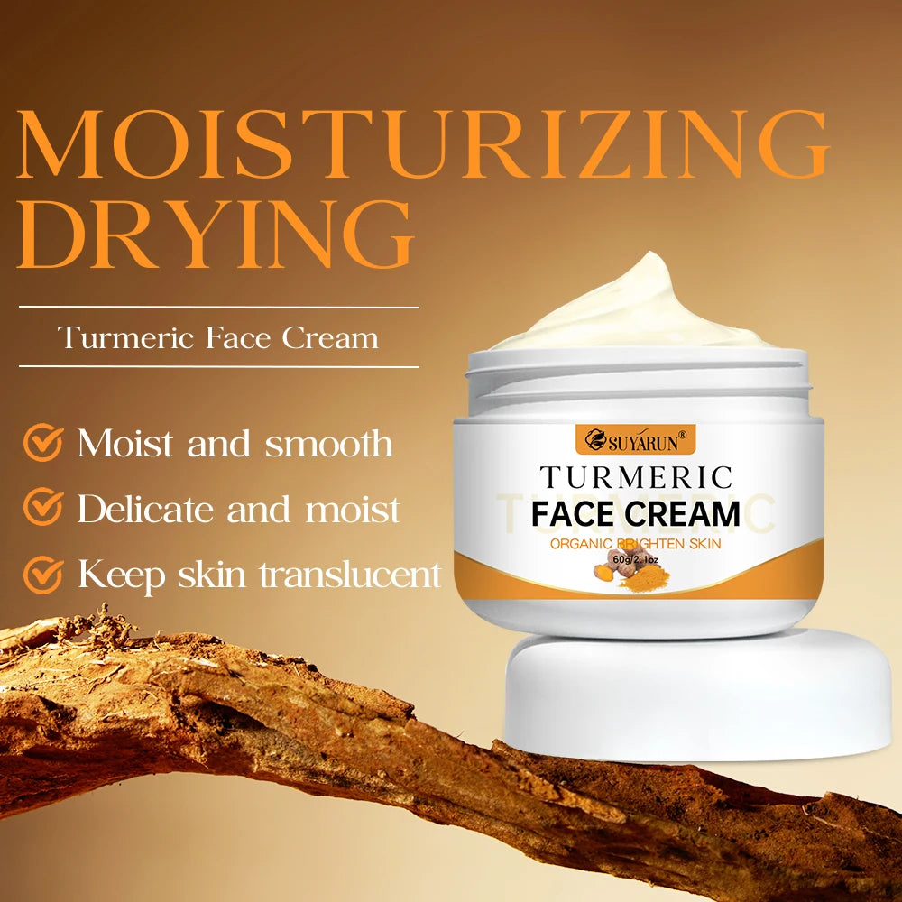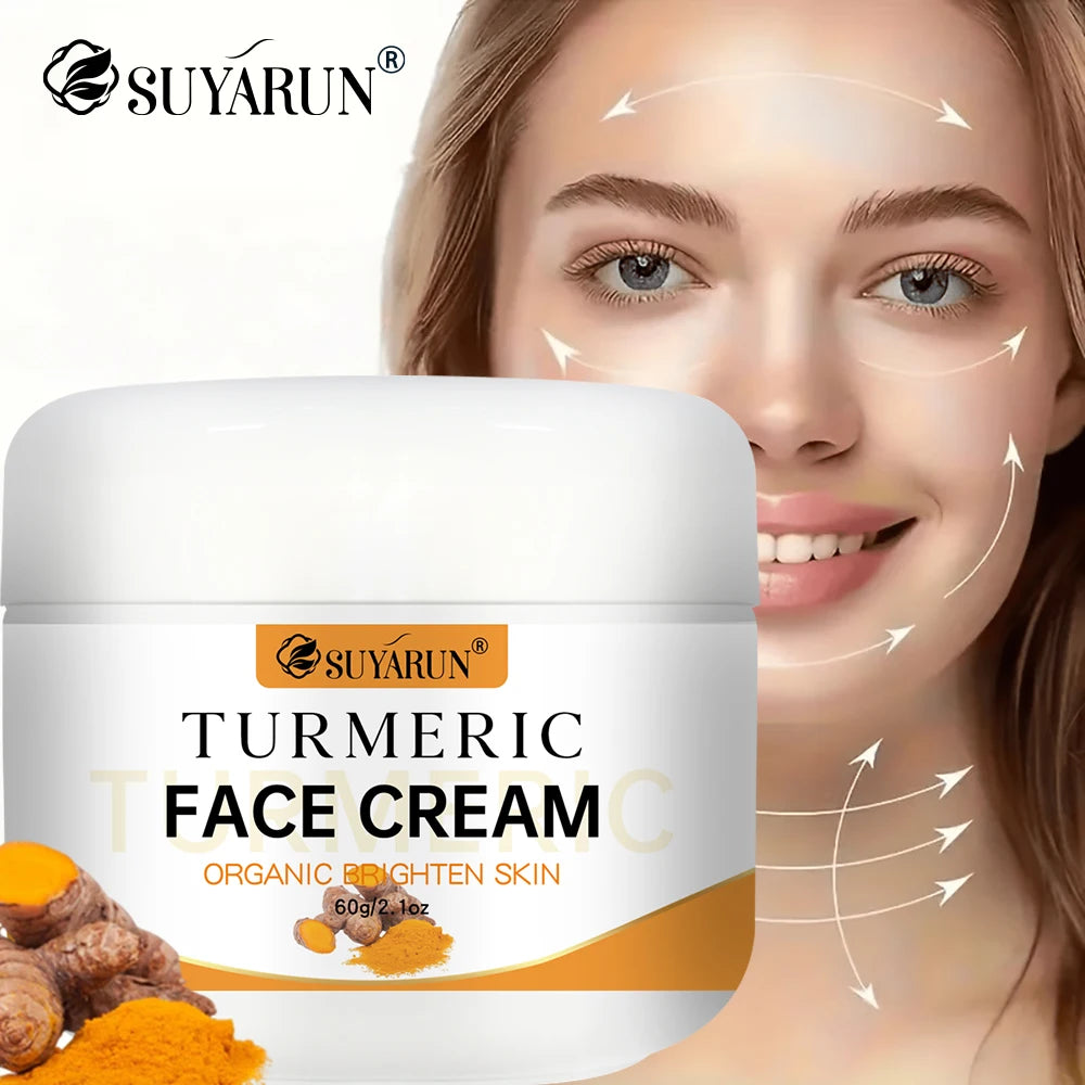 SUYARUN Turmeric Face Cream - Anti-Aging & Brightening, Oil-Free Moisturizer for Sensitive Skin, Organic Skincare with Vitamin E